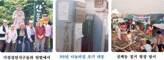 “´ëÇп¡¼ Çлý¿îµ¿À» Çß¾î¿ä. 86ÇйøÀ̾ú´Âµ¥, Á¹¾÷ ÈÄ¿¡´Â ºó¹Î¿îµ¿À̳ª ³ëµ¿¿îµ¿À» ÇØ¾ß°Ú´Ù´Â ¸ñÇ¥´Â ÀÖ¾úÁÒ. Á¹¾÷ ÈÄ¿¡´Â ¿¬±ØÀ» Çß½À´Ï´Ù. ¿ì¸®´Â ‘ÇöÀå’À̶ó´Â ±Ø´ÜÀ» ¸¸µé¾ú°í, ÆÄ¾÷ÇöÀå °°Àº °÷¿¡ °¡¼ °ø¿¬À» ÇßÁÒ. Àú´Â °³ÀÎÀûÀ¸·Î ±ØÀÛ °øºÎ¸¦ ÇÑ Àûµµ ÀÖ½À´Ï´Ù. ±×·¯¸é¼, ¹®È¿îµ¿À» Áö¿ª¿¡¼ ÇÏ¸é ¾î¶³±î ÇÏ´Â »ý°¢À» Çß½À´Ï´Ù. ÀÏ ³â¿¡ ÇÑ ¹ø ±¸¹Îȸ°ü °°Àº °÷¿¡ °¡¼ Áö¿ªÁֹεéÀÇ »ýȰ À̾߱⸦ ¿¬±ØÀ¸·Î ¸¸µå´Â °Í°ú °°Àº °ÍÀ» ÇÏ°í ½Í¾ú¾î¿ä. ±×·± À̾߱⸦ ÇÏ°í ´Ù´Ï´Ï±î, °°ÀÌ °øºÎÇÏ´ø Ä£±¸°¡ ³ª´®ÀÇ ÁýÀ» ¾Ë·ÁÁÖ´õ±º¿ä. ±×·¡¼ ³ë¿øÀÚȰÀÇ ±èÈ«ÀÏ ½ÅºÎ¸¦ ¸¸³ª°Ô µÇ¾úÁÒ. ±è ½ÅºÎ´Ô°ú´Â Áö¿ª¿¡¼ÀÇ ¹®ÈÇà»ç¿¡ °üÇÑ ÀdzíÀ» Çϱâ À§Çؼ ¸¸³µÁö¸¸, ½ÅºÎ´Ô°úÀÇ ¸¸³ª°í À̾߱âÇÏ´Ù º¸´Ï ¿îµ¿ÀÇ Àǹ̰¡ »õ·Ó°Ô ´Ù°¡¿Ô½À´Ï´Ù. ½ÅºÎ´ÔÀº °¡³ÇÑ »ç¶÷µéÀÌ ÀÓ´ë¾ÆÆÄÆ®¿¡ »ì°í ÀÖ°í, ±× ¾ÆÆÄÆ®´Â ½½·³È µÇ°í, ¸Á°¡Á® °¡°í ÀÖ´Ù°í ¸»Çß½À´Ï´Ù. ±×µéÀÇ ´ÜÀýÀû ¹®È¸¦ ¿¬´ë¶ó´Â ´Ù¸®·Î ÀÕ´Â ¿ªÇÒÀÌ ÇÊ¿äÇѵ¥, ±×°ÍÀÌ ¹®È¶ó´Â °ÍÀ̾ú¾î¿ä. ½ÅºÎ´ÔÀÇ ¸»ÇÏ´Â ±×·± °ÍµéÀº ¹Ù·Î ±×¶§±îÁö Á¦°¡ ã¾Æ ´Ù³æ°í, ÇÏ°í ½Í¾ú´ø °ÍÀ̾ú½À´Ï´Ù. Àú¿¡°Ô ±×¶§±îÁö ¿îµ¿À̶õ ÀúÀÇ ÀÚÀÇ½Ä ¼Ó¿¡¼¸¸ ÀÖ¾ú´ø °ÍÀ» Ç¥ÇöÇϱâ À§ÇÑ ¼ö´ÜÀ̾ú½À´Ï´Ù. Àú´Â »ç¶÷µéÀ» ¸¸³ª´Â °ÍÀ» ÁÁ¾ÆÇ߱⠶§¹®¿¡ »ç¶÷µéÀ» ¸¸³µ°í, ±×µéÀ» ÀÌÇØÇß½À´Ï´Ù. ±×·¸Áö¸¸ ±× ÀÌÇØ´Â ÀúÀÇ °¨¼ºÀÌ ÃæÁ·µÈ °ÍÀ̾úÁö, ÀúÀÇ ¸öÀÌ ÀÌÇØÇÑ °ÍÀº ¾Æ´Ï¾ú¾î¿ä. Àú¿¡°Ô °øµ¿Ã¼¶õ Àǹ̴ °ü³äÀ¸·Î¸¸ ÀÖ¾úÁö »ý»ýÇÏ°Ô ÇÊ¿äÇÑ ¹«¾ùÀº ¾Æ´Ï¾úÁÒ. ±×·¡¼ Àú´Â ³ë¿ø³ª´®ÀÇÁý¿¡¼ ÀÏÇϱâ·Î Çß½À´Ï´Ù. ½ÅºÎ´ÔÀ» óÀ½ ¸¸³ °ÍÀº 1997³â7¿ù15ÀÏÀ̾ú½À´Ï´Ù. “