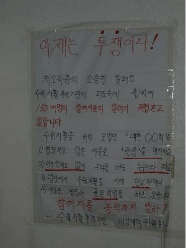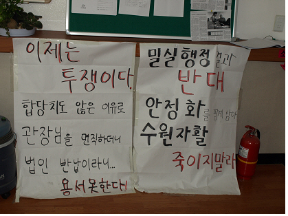 - ½Ç¹«ÀÚµéÀÌ ¹ýÀÎ ÂÊÀ¸·Î ÁÙ¼±â¸¦ Çߴ°¡? “±×·¸´Ù. ±×µéÀº ’°üÀå´Ô Á» ³ª°¡ÁÖ¼¼¿ä‘¶ó°í ¿¬´ë¼¸íÇß´Ù. »ç¹«½Ç ¿¼è¸¦ ¹Ù²Û Àûµµ ÀÖ¾ú´Ù. ³ªµµ ¸ð¸£°Ô ¿¼è¸¦ ¹Ù²Ù¾î¼ ÀÚ±âµé³¢¸® ³ª´²°¡Á®¼, °øµ¿Ã¼ Âü°¡ÀÚµéÀÌ »ç¹«½Ç¿¡ µé¾î¿ÀÁö ¸øÇÑ Àϵµ ÀÖ¾ú´Ù.”