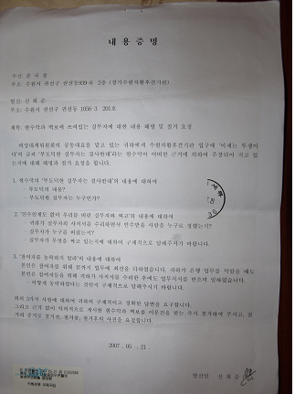 <½ÅÈñ¼ø ¾¾°¡ ¹®±¹Á¤ °üÀå¿¡°Ô º¸³½ ³»¿ëÁõ¸í - ³»¿ëÁõ¸í ¹®±¸´Â ´ÙÀ½ ÂÊ ÂüÁ¶>